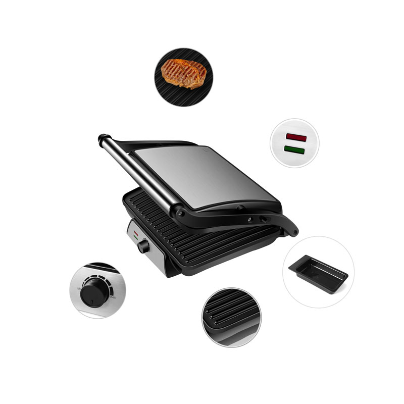 | Características | Alça segura com toque frio; Bandeja coletora para coleta do excesso de óleo; Botão de controle de temperatura ajustável; Revestimento antiaderente para fácil limpeza; O sistema de dobradiças flutuantes ajusta-se automaticamente a qualquer tamanho de torrada, carne ou lanche Pode abrir 180° como uma grelha aberta, Luzes ligadas e prontas, Pés antiderrapantes |
